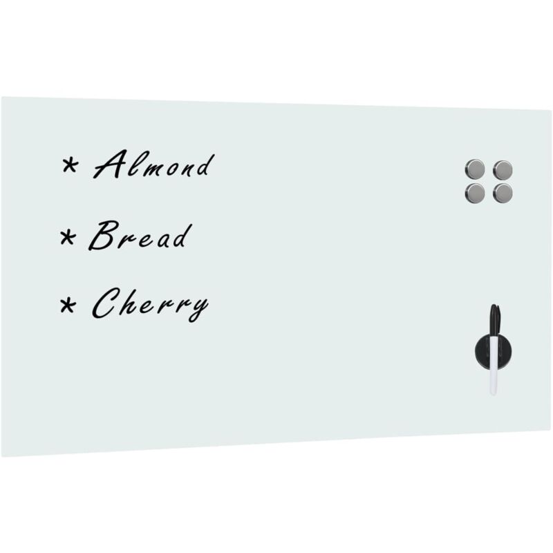 Descrizione: Le lavagne in vetro magnetiche cancellabili a secco offrono tutti i vantaggi di una lavagna tradizionale in un prodotto più moderno ed ecologico. La lavagna di vetro è dotata di vetro temperato di sicurezza, che non si macchia, graffia o ammacca facilmente. è possibile proteggere carte o note sulla lavagna con il magnete incluso. Inoltre, è possibile scrivere sulla lavagna magnetica con una penna bianca cancellabile a secco ed è facile da pulire con il cancellino incluso. Sono inclusi i materiali necessari per il montaggio a parete, il che semplifica il collegamento della scheda a qualsiasi parete di casa, ufficio o scuola. Il pannello è anche facile da montare. Specificazioni: Colore: Bianco Materiale: Vetro temperato Dimensioni: 120 x 60 cm (L x A) Spessore della lavagna: 4 mm Facile da fissare a parete Materiali di montaggio inclusi Assemblaggio richiesto: Sì La consegna include: 1 Lavagna cancellabile a secco 1 Cancellino 1 Penna bianca 4 Magneti