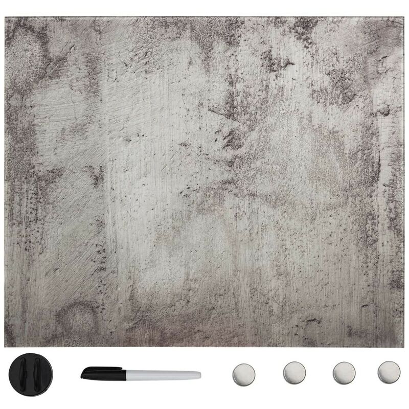 Descrizione: Le lavagne in vetro magnetiche cancellabili a secco offrono tutti i vantaggi di una lavagna tradizionale in un prodotto più moderno ed ecologico. La lavagna di vetro è dotata di vetro temperato di sicurezza, che non si macchia, graffia o ammacca facilmente. è possibile proteggere carte o note sulla lavagna con il magnete incluso. Inoltre, è possibile scrivere sulla lavagna magnetica con una penna bianca cancellabile a secco ed è facile da pulire con il cancellino incluso. Sono inclusi i materiali necessari per il montaggio a parete, il che semplifica il collegamento della scheda a qualsiasi parete di casa, ufficio o scuola. Il pannello è anche facile da montare. Specificazioni: Colore: Calcestruzzo Materiale: Vetro temperato Dimensioni: 50 x 50 cm (L x A) Spessore della lavagna: 4 mm Facile da fissare a parete Materiali di montaggio inclusi Assemblaggio richiesto: Sì La consegna include: 1 Lavagna cancellabile a secco 1 Cancellino 1 Penna bianca 4 Magneti