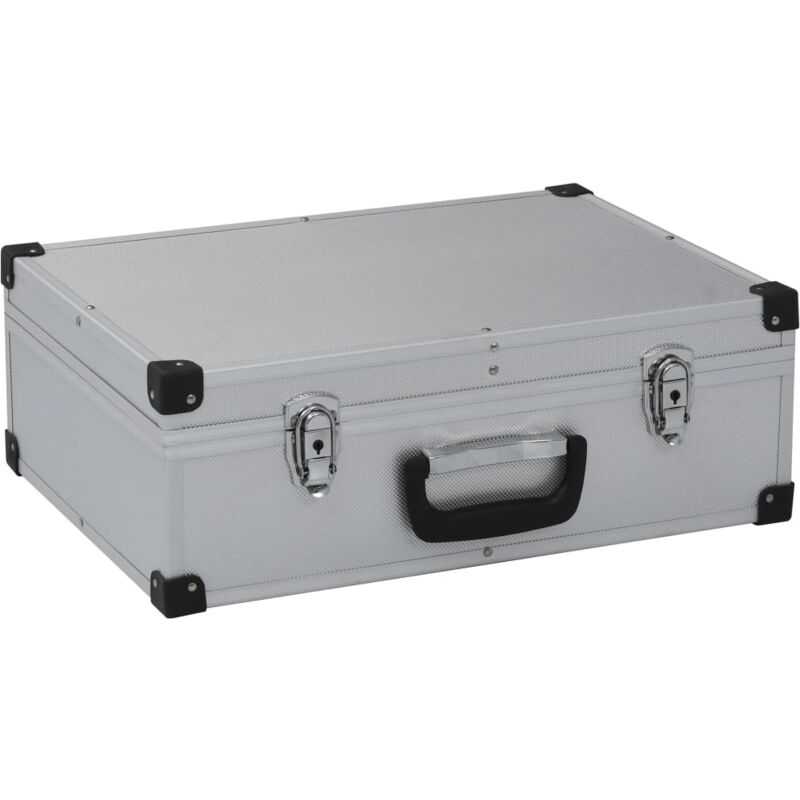 Descrizione: Mantenete tutti i vostri attrezzi in ordine con questa valigetta in alluminio testurizzata! Realizzata in legno, laminatura in ABS e alluminio, questa valigetta per attrezzi è resistente all'acqua e particolarmente durevole. E' dotata di una bordatura rinforzata in alluminio al fine di poter garantire una maggiore resistenza. Questa valigetta per attrezzi in alluminio è dotata di 6 scomparti e 17 tasche, offrendo così ampio spazio per conservare utensili come cacciaviti, pinze e chiavi in modo ben organizzato. è dotata di chiusura con serratura a chiave, per permettervi di riporre i vostri accessori in modo più sicuro. Include anche una pratica maniglia di trasporto integrata che permette facilmente di portare con voi tutti i gli attrezzi necessari. Conservate e trasportate facilmente i vostri attrezzi grazie alle nostre valigette portatili! Specificazioni: Colore: Argento Materiale: Alluminio, ABS e legno Dimensioni: 46 x 33 x 16 cm (L x P x A) Numero di scomparti: 6