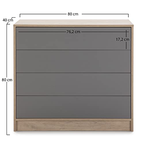 HOMN LIVING Cassettiera de Noche Panama 4 cassetti, Color Legno e Grigio, 80 cm (Larghezza) 40 cm (profonditá) 80 cm (Altezza)