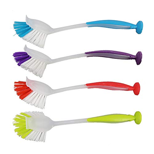 Homo Trends 4 spazzole per piatti, spazzola per piatti con ventosa, impugnatura morbida e setole antigraffio, spazzola da cucina per la pulizia dei piatti