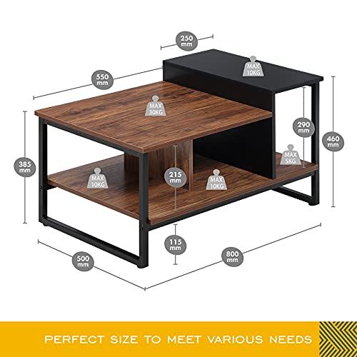 【STILE INDUSTRIALE】 Realizzato in metallo resistente e materiali in legno addensato, questo tavolo da soggiorno è molto innovativo ed elegante in stile industriale, abbastanza resistente per lungo tempo a casa. Il colore a contrasto dell'aspetto della venatura del legno nero e noce sembra moderno e alla moda.