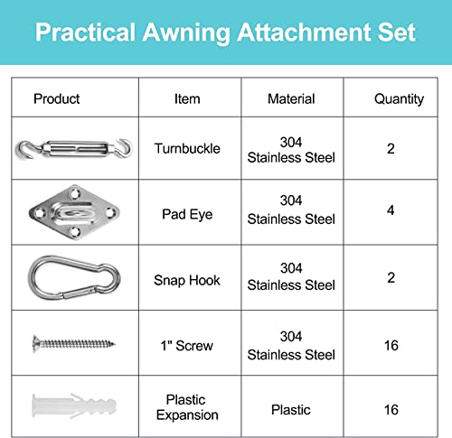 Hardware parasole di alta qualità per tende da sole: realizzato in acciaio inossidabile di alta qualità, resistente, resistente alla ruggine, robusto e più sicuro.