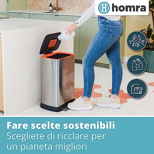 Homra Cestino a Pedale 30l Koniq | Pattumiera Cucina con Filtro antiodore | Secchio Spazzatura Contenitore 30 Litri | Chiusura silenziosa | Bidone rifiuti interno | Acciaio inox | Finitura Spazzolata