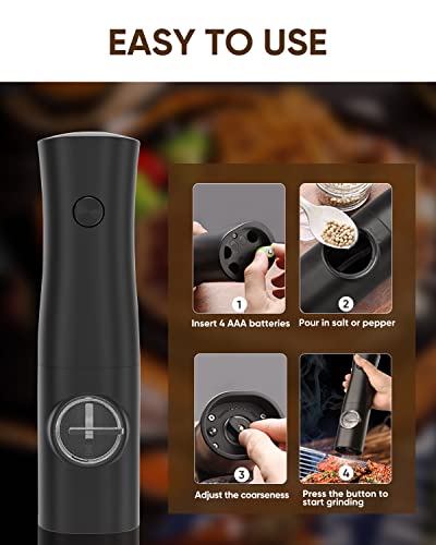 【Macinazione con una mano】 Questo macina sale e pepe elettrico è alimentato da 4 batterie AAA. Dopo aver installato la batteria, premere il pulsante per macinare automaticamente. Nota: le batterie non sono incluse.