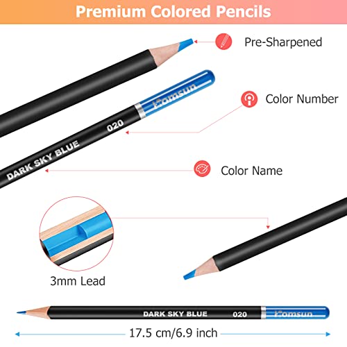 【Qualità Premium】: ogni matita colorata è stampata con nome del colore, numeri e codice colore per l'identificazione. I cavi con anima morbida da 3 mm non si rompono, si rompono o si sbriciolano facilmente.