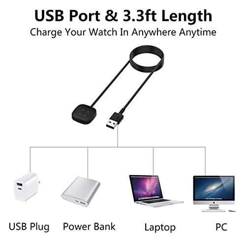HOMTERN Confezione da 2 caricabatterie magnetici per FITBIT Versa 4/Versa 3, Sense 2/Sense, 1 m 100 cm Sostituzione USB Cavo di ricarica Dock Smartwatch Accessori