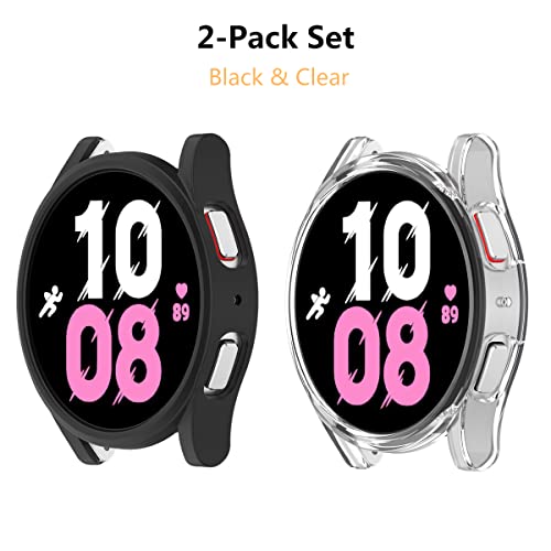HOMTERN Confezione da 2 custodie compatibili con Samsung Galaxy Watch 5 da 44 mm e Galaxy Watch 4 da 44 mm, custodia rigida in PC antiurto antigraffio, 44 mm, trasparente e nero