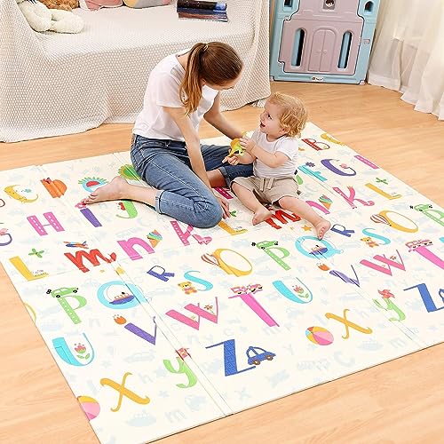 HOMTOL Tappeto Gioco Bambini Pieghevole,Tappeto Cameretta Bambina Tappetino Morbido Double Face per Imparare a Gattonare, Isolamento Termico e Impermeabile (180_x_160_cm, A)