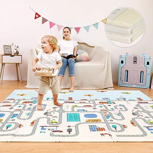 HOMTOL Tappeto Gioco Bambini Pieghevole,Tappeto Cameretta Bambina Tappetino Morbido Double Face per Imparare a Gattonare, Isolamento Termico e Impermeabile (180_x_200_cm, C)