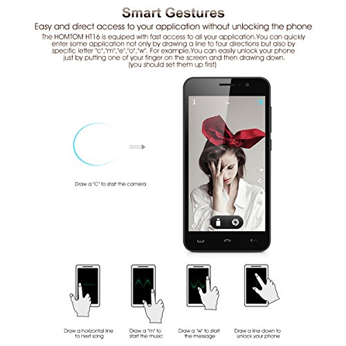 HOMTOM HT16 - Smartphone 3G Android 6.0 (5.0", MT6580, Quad-Core, 1.3Ghz, 1GB RAM 8GB ROM, 2MP+5MP Camera, Smart wake, Dual SIM, Gesture Sensing, OTG, OTA) Nero