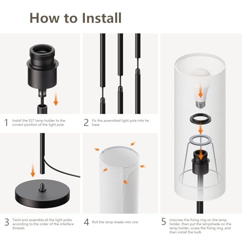 LED a risparmio energetico: lampada da terra led è dotata di una lampadina LED E27 da 9W, che consuma meno energia rispetto alle lampadine tradizionali e offre migliori effetti luminosi. La durata è fino a 50.000 ore, fornendo un ambiente di illuminazione stabile e duraturo per il tuo soggiorno o camera da letto.
