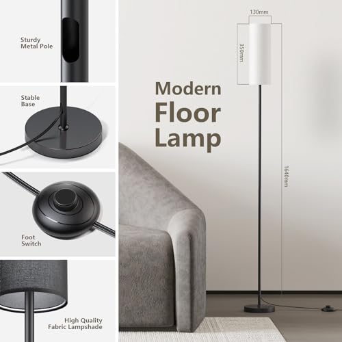 Homuserr Lampada da Terra, Lampada LED Dimmerabile 9W, 3 Temperature Colore, Piantana Lampada da Terra con Paralume Lino e Interruttore a Pedale, Lampada da Lettura per Soggiorno, Camera, Bianco