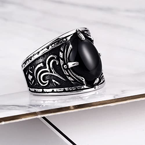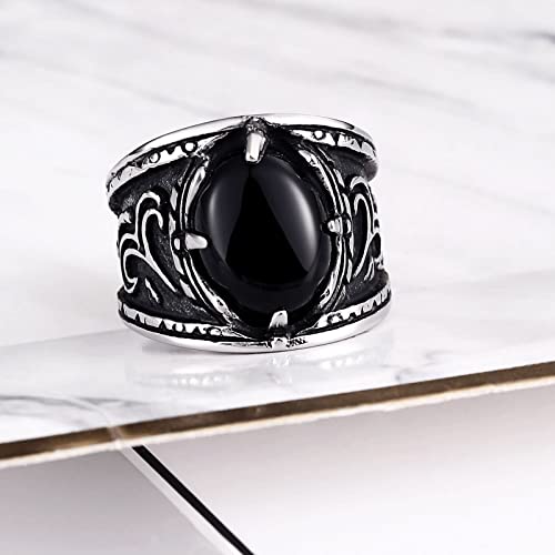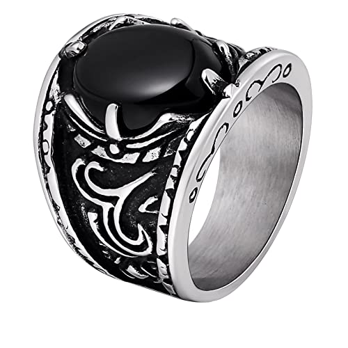 Homxi Anelli Uomo Gotico,Anelli Pietra Ovale con Vintage Anelli Uomo Acciaio Inossidabile Argento Anelli Misura 22(62mm)