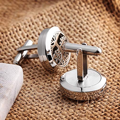 Homxi Gemelli Camicia Uomo Matrimonio Personalizzati,Albero della Vita Rotondi Gemelli da Polso Uomo Acciaio Inossidabile Gemelli Argento Matrimonio
