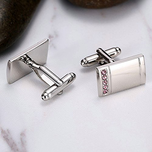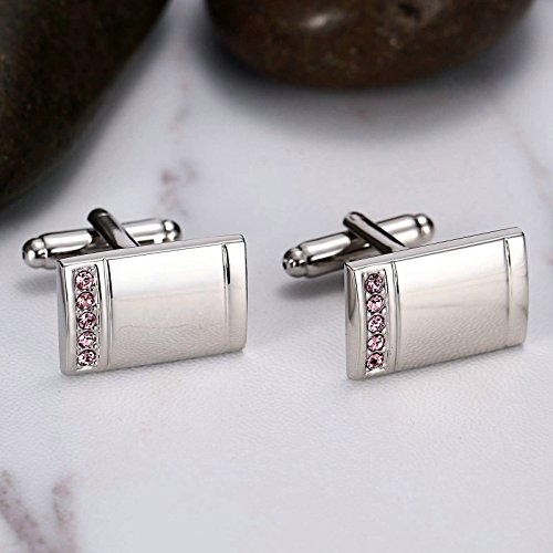 Homxi Gemelli Camicia Uomo Vintage,Rettangolo di Cristallo Liscio Gemelli da Polso Uomo Acciaio Inossidabile Gemelli per Camicia Uomo Rosa Argento