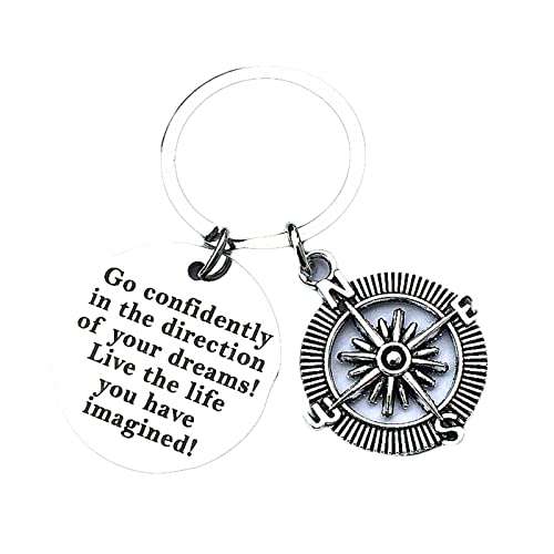 Homxi Portachiavi Argento Portachiavi Donna Uomo in Acciaio Inossidabile,Bussola Tondo Incisione Go Confidently in.. Tondo 30MM