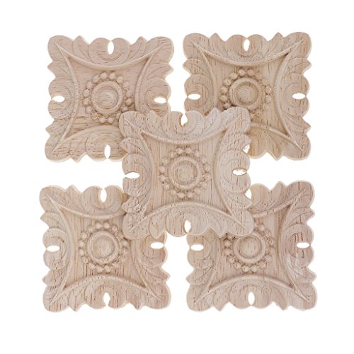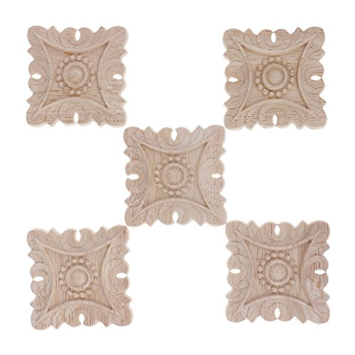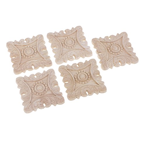 Homyl 5 Pezzi Legno Intagliato Piazza Applique Non Dipinta Fiore Mobili per La Casa Figurine Decorative Artigianato d'Arte - 5x5cm # 3