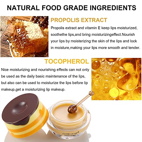Honey Pot Bee Balm Lip Balm con cucchiaio di miele, esfoliante Honey Pot Lip Balm Sleeping Lip Mask con pennello, idratante e prevenzione scrub labbra secche e screpolate Esfoliante (1PCS)