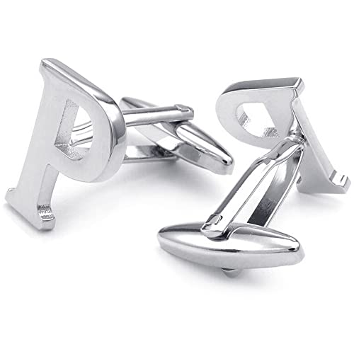 HONEY BEAR Gemelli Uomo con iniziali Argento Lettera Iniziale,Acciaio Inossidabile per Camicia Matrimonio (P)
