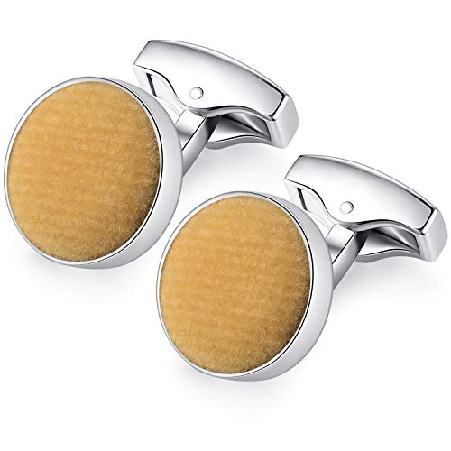 HONEY BEAR Tessuto Velluto Il giro gemelli per uomo - acciaio inox per regalo di nozze business (Giallo 2)
