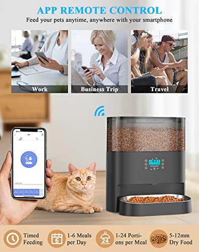 HoneyGuaridan Distributore Cibo Gatti WiFi, 6L Dispenser Cibo Gatti & Cani Automatico con Timer e Controllo App, Doppio Ciotole | Pet Feeder con Essiccante e Registratore Vocale - 1-6 Pasti al Giorno