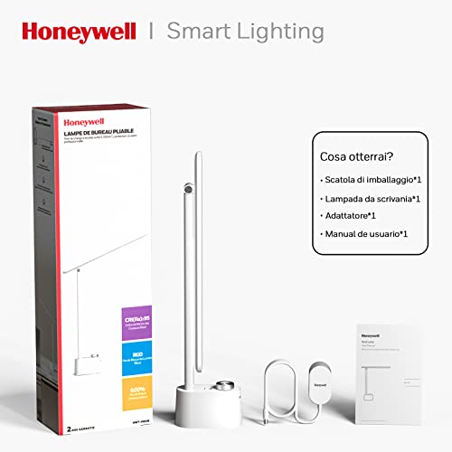 Honeywell Lampada da scrivania con porta di ricarica USB - Lampada da comodino dimmerabile per casa e ufficio, lampada da tavolo piccola pieghevole portatile per Adulti che leggono e lavorano, HWT-H01