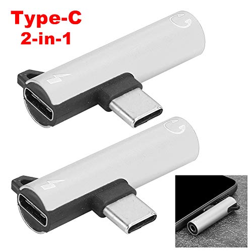 Hong Adattatori per la Ricarica simultanea a 2 Pezzi Connettore per Cuffie con connettore di Tipo C per Xiaomi ECC. per Telefono/Tablet/PC(Silver)