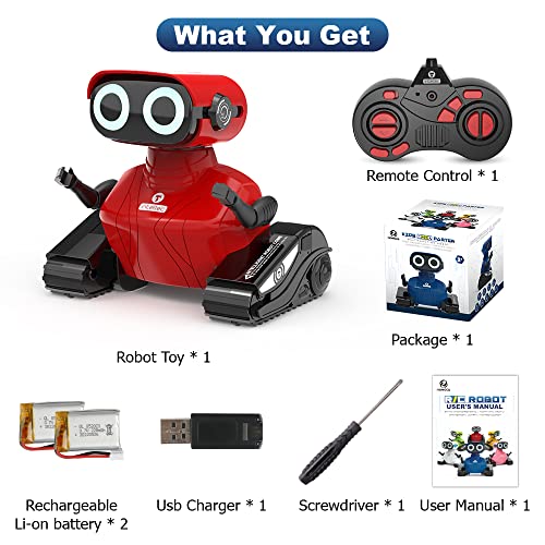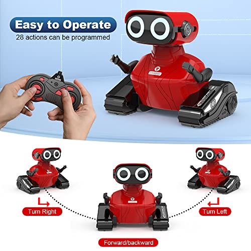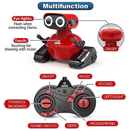 HONGCA Robot Telecomandato per Bambini, Robotica Programmabile Ricaricabile con Musica Sensore Tattile Registrazione Occhi a LED Giocattolo Educativo Sicuro Regalo di Natale e Compleanno - Rosso