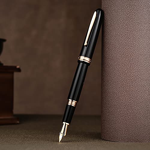 Hongdian 1841 - Penna stilografica, pennino fine, in resina nera, con custodia in metallo