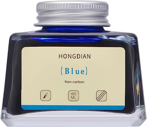 Hongdian - Inchiostro in bottiglia per penna stilografica, colore blu, inchiostro in bottiglia di carbonio per penna stilografica da 60 ml
