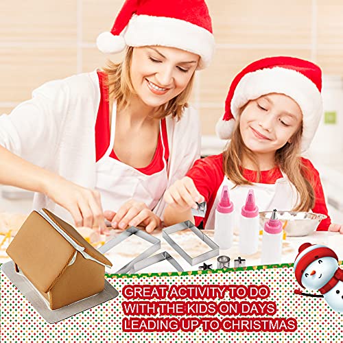 BELLA FORMA: Compresi 10 tagliabiscotti che possono essere utilizzati per realizzare case natalizie come muri, pavimenti, finestre, croci, camini e stelle a cinque punte, tutte queste forme hanno un effetto 3D