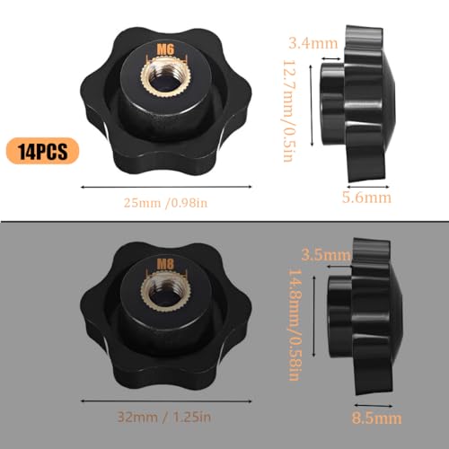 HONGECB Stella Dadi di Serraggio Manopola, Dadi Manopola del Tornio Maniglia, Dadi di Serraggio Zigrinati, Filettatura Femmina Manopole, Per Macchine Utensili, M6, 14 Pezzi