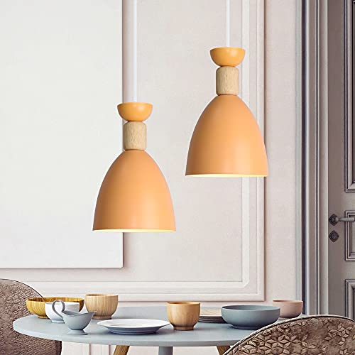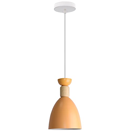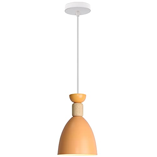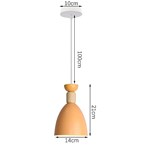 Hongho-Plafoniera a sospensione, stile nordico, moderno, lampade in alluminio e legno, attacco E27, altezza regolabile, stile semplice per soggiorno, sala da pranzo, cucina, Ø 14 cm, colore: arancione