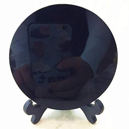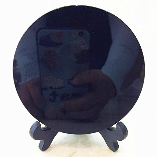 HONGHUA Specchio Fengshui Piatto Rotondo Specchio Scrying Pietra Ossidiana Nera Naturale da 100 Mm per La Decorazione Domestica Regalo con Mensola, 10 Cm