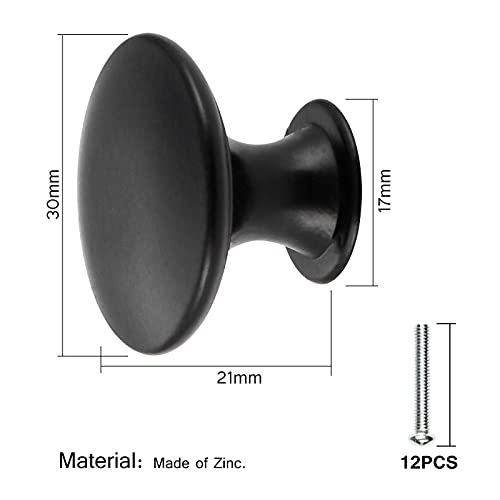 HonGien Set di 12 Maniglia per Mobili Tonda Vintage, Pomelli per Porta Maniglia per Armadietto Pomolo per Mobile Diametro 30mm adatto per Mobili da Cucina Porta Armadio Cassetto Comò, Nero