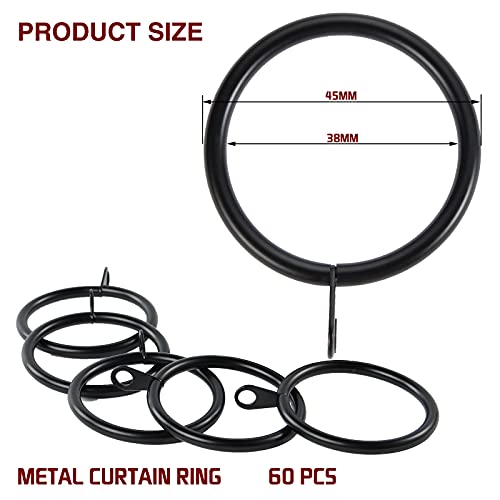 HonGien 60 Pezzi Anello per Tende in Metallo con Anello di Fissaggio per Tende e aste Diametro Interno 38 mm (Nero)