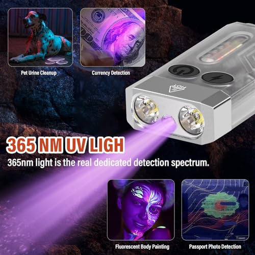 HONGNIX Taschenlampe Mini Torcia LED Ricaricabile,1000LM Portachiavi Torcia con 365 NM Luce UV e 14 Modalità,1000mAh Batteria,Magnetica,Sorgente Luminosa Multicolore,IPX4 Impermeabile-Bianco
