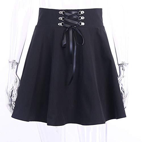 HongYa Rosetic Women Skirt Black Gothic Dark Female Lace Up Skirts Bandage Japanese Style Zipper Pleated Skirts School Girl Punk Skirt-Black,S