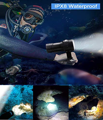 Hongzer Torcia Subacquea, Palmare Protettivo 18000lm IPX8 Impermeabile Torcia Subacquea Professionale con Doppie luci di Sicurezza Torcia Subacquea per Esterno, Sport subacquei