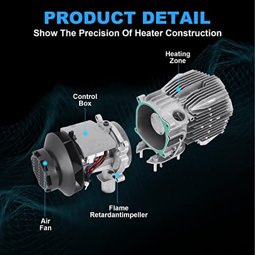 ➤ Basso rumore: riscaldatore diesel con un silenziatore, basso rumore, può funzionare senza intoppi in qualsiasi ambiente, fare una notte tranquilla per voi. La serie completa di accessori permette di installare facilmente il riscaldatore di parcheggio nel veicolo. Può essere installato in modo flessibile sotto la cabina, il bagagliaio o il contenitore.