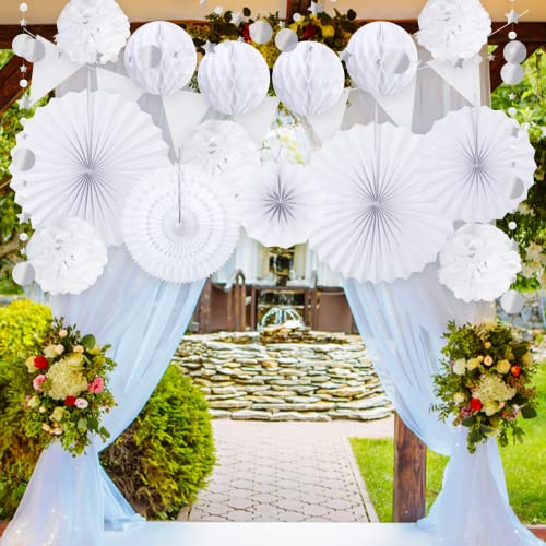 HONMOK 20 Pezzi Decorazione per Feste di Matrimonio,Pompon di Carta Bianco,Palle a Nido d'Ape,Ventilatori di Carta Decorazione,Pompons Decorativi,Bandierine,per Feste di Nozze