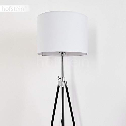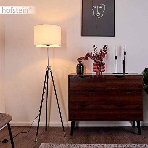 Honoa, lampada da terra moderna in metallo nero cromato, 1 lampada da terra rotonda con paralume in tessuto bianco, 1 x E27 max. 40 Watt, adatta per lampadine a LED