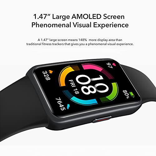 HONOR Band 6 Braccialetto Intelligente Schermo Intero 1,47 Pollici AMOLED Touchscreen a Colori SpO2 Frequenza cardiaca Sonno Stress Nuoto Activity Tracker Versione Globale, Rosa