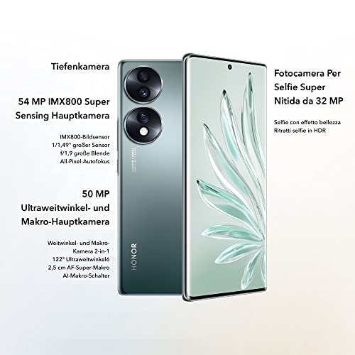 HONOR 70 Smartphone 5G, 8+128 GB, Display Curvo OLED da 6,67 Pollici 120 Hz, Tripla Fotocamera Posteriore da 54 MP con Android 12, Batteria da 4800 mAh + Ricarica Rapida da 66W, Emerald Green