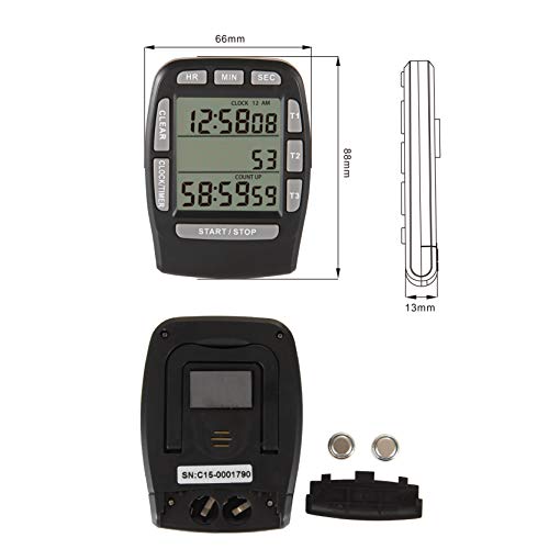Ha tre timer separati che ti consentono di usarlo per tre eventi completamente separati. intervallo del timer: 99 ore 59 minuti 59 secondi.