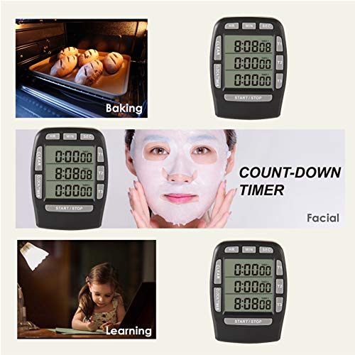 HonorMeet Digital Kitchen Triplo timer, conto alla rovescia e monitoraggio del conto alla rovescia, forte cicalino di promemoria, batteria sostituibile per cottura al forno Gym Exam Meeting. (Black)