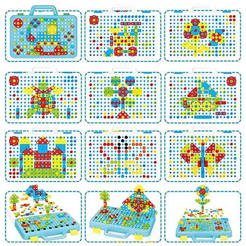 HONPHIER Puzzle Mosaico 252 Pezzi Mosaico di Puzzle 3D Elettrico Costruzioni Trapano Chiodini Puzzle Kit Giocattolo Educativo Creativo per Bambini