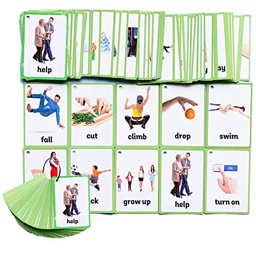 HONTOUSIP 65 PCS Verbs Cards- Learning Picture & Word Card Flashcards(English Word Learning Card & Pocket Size Flash Card for Children And Preschool),4.33x3.15in