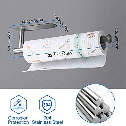 HONZUEN Autoadesivo Portarotolo Cucina Sottopensile, Porta Rotolo da Cucina da Parete Acciaio Inossidabile, Portarotoli Cucina Senza Forature per Cucina e Bagno